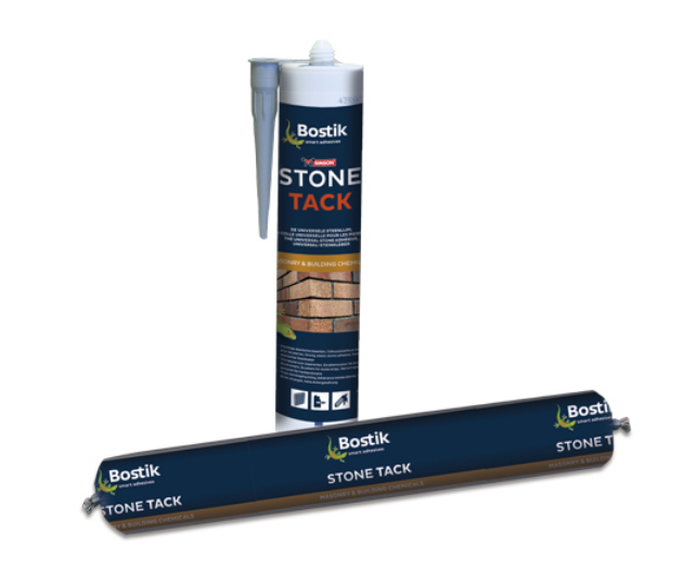 Bostik Stone Tack is een hoogwaardige, elastische montagelijm op basis van SMP-technologie (Silyl Modified Polymer), speciaal ontwikkeld voor het verlijmen van zware steenachtige materialen. Het product biedt een zeer hoge directe aanvangshechting en zorgt voor een sterke, duurzame verbinding op uiteenlopende bouwondergronden. Stone Tack is geschikt voor binnen- en buitentoepassingen en wordt veel gebruikt voor steenstrips, natuursteen, baksteenrollagen, vensterbanken, dorpels en afdekplaten. Na uitharding blijft de lijm permanent elastisch, waardoor spanningen en werking van de ondergrond worden opgevangen zonder verlies van hechting. Dankzij de uitstekende weers-, UV- en vochtbestendigheid is het product ideaal voor langdurige en veeleisende geveltoepassingen.
