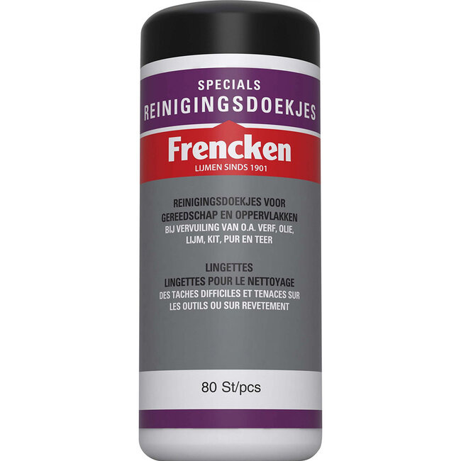 De Frencken Reinigingsdoekjes zijn speciaal ontwikkeld voor het snel en efficiënt verwijderen van verse en niet-uitgeharde lijm- en kitresten, zoals silicone, MS Polymer®, PU en acryl, evenals PU-schuim en verf.