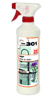 Moeller Stone Care P301 RSP Drie-in-één is een professioneel onderhoudsmiddel in sprayflacon voor dagelijkse reiniging van natuursteen- en kunststeenoppervlakken, zoals keukenwerkbladen, tafels, wastafels, vensterbanken en toonbanken. Het gebruiksklare product reinigt, verzorgt en beschermt in één bewerking, verwijdert licht vuil en vet en versterkt bestaande beschermlagen. P301 is eenvoudig in gebruik, geschikt voor dagelijks onderhoud binnenshuis, met een verbruik van circa 20–30 m² per sprayflacon en mag niet gecombineerd worden met andere reinigingsmiddelen, impregneermiddelen, verzegelingen of onderhoudsproducten.
